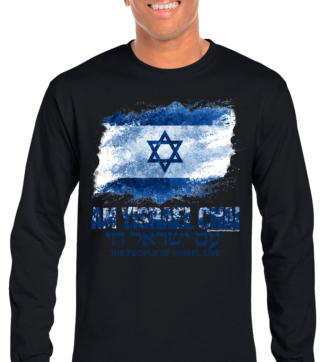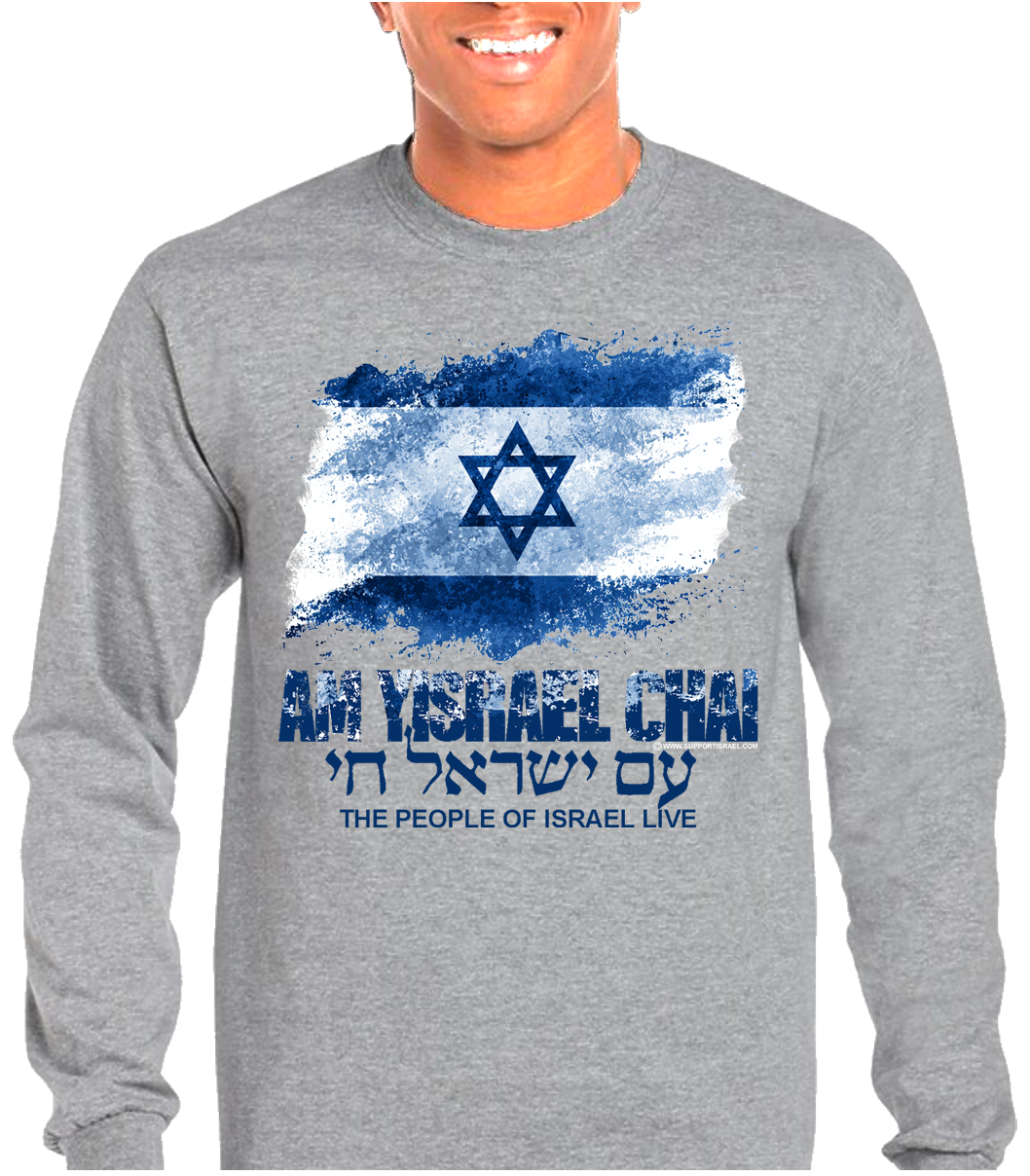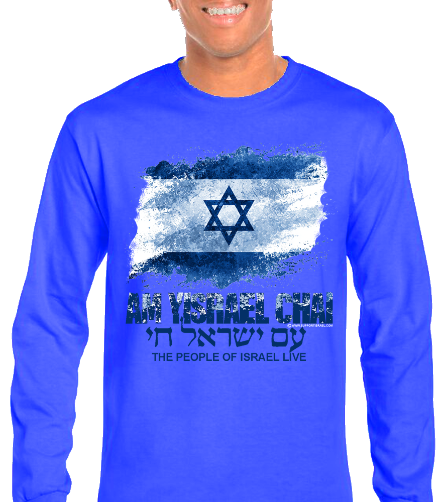 Am Yisrael Chai Israel Lives Distressed Design Long Sleeve T-Shirt