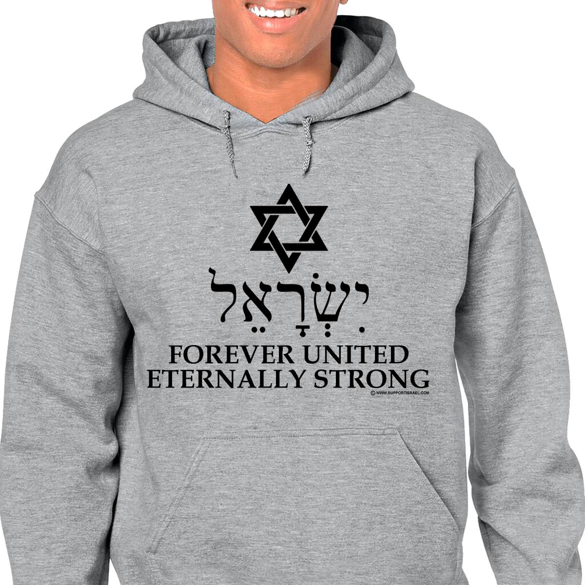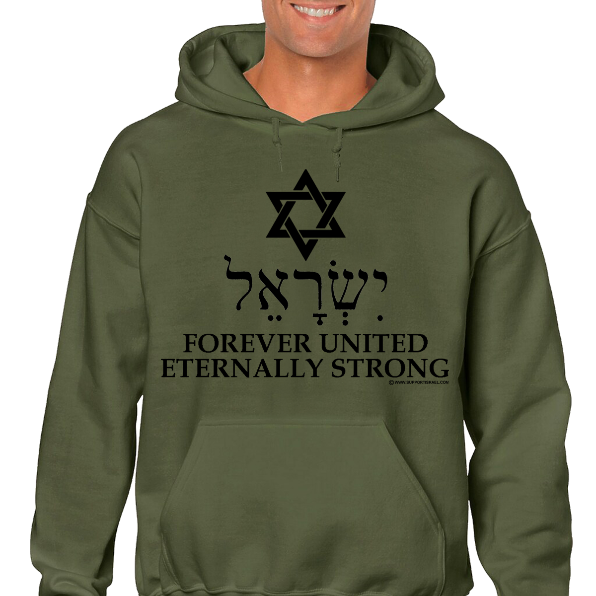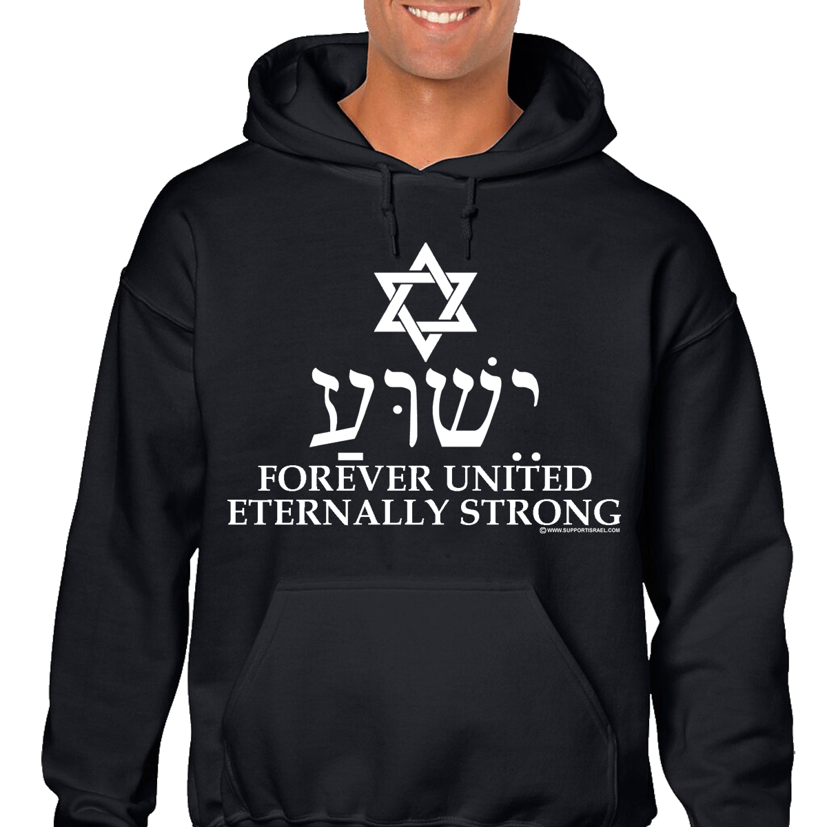 Forever United, Eternally Strong with Star of David and Israel in Hebrew Hoodie.