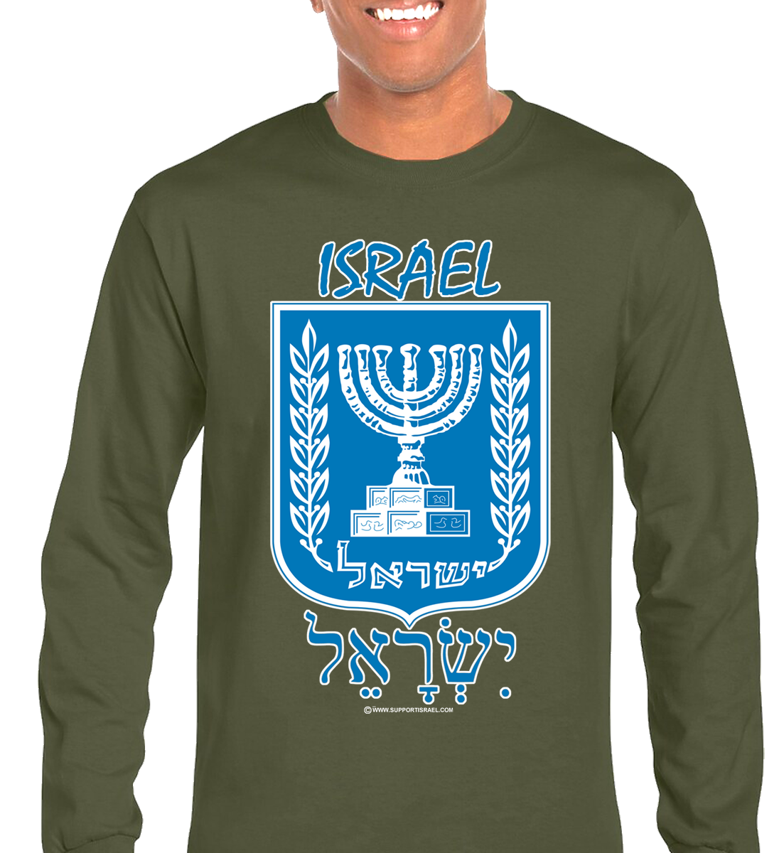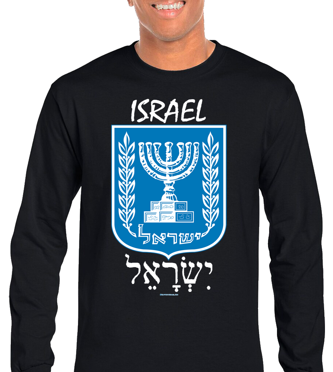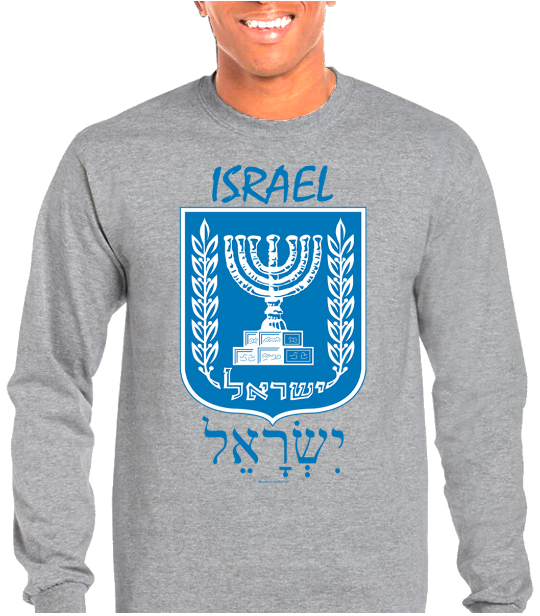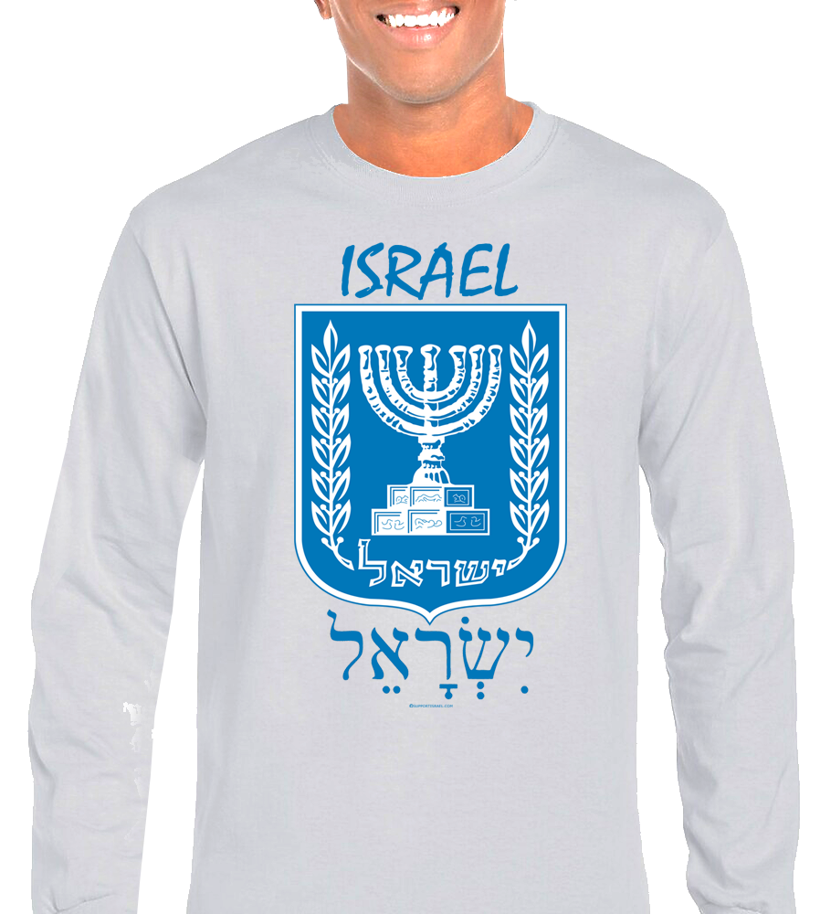 Israel Emblem English and Hebrew Long Sleeve T-Shirt