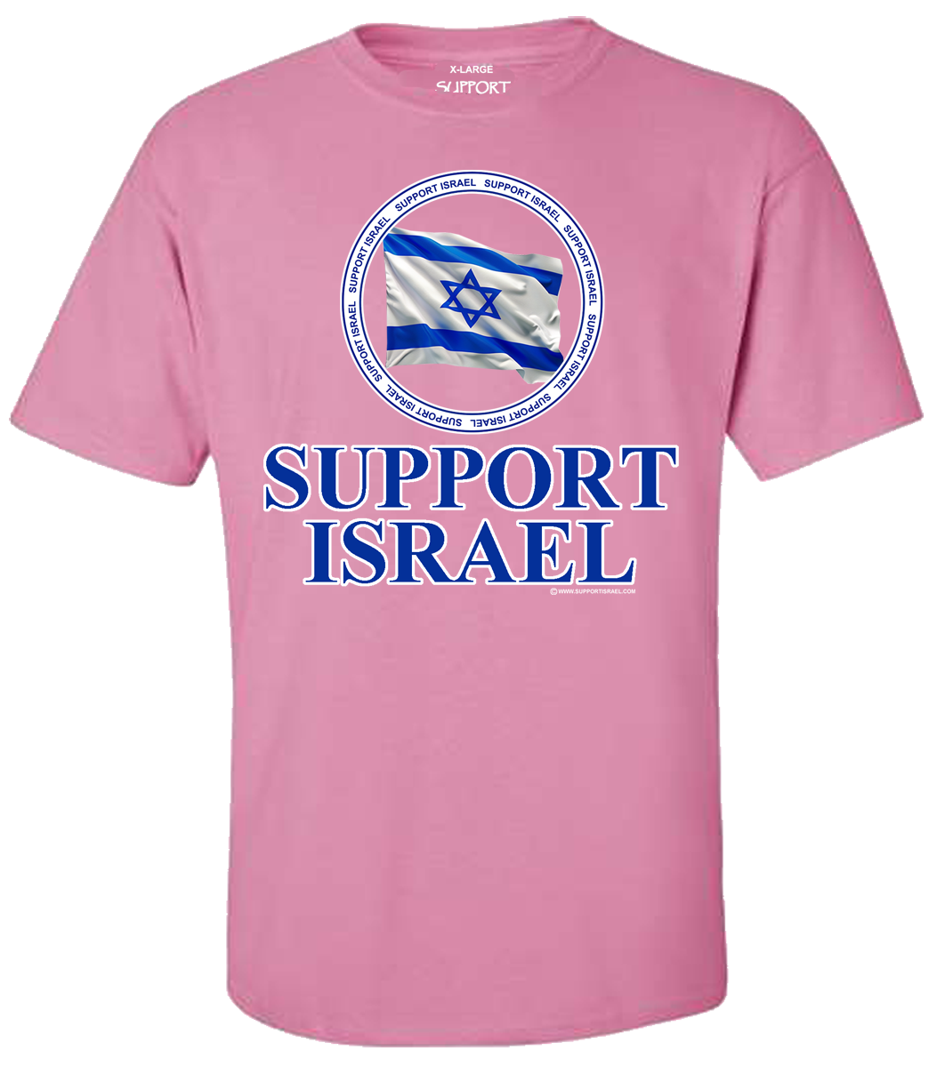 Support Israel Flag and Circle Text Logo T-Shirt. This one is especially special to us because it says it all: “SUPPORT ISRAEL”. Plus the design is all about what our website is all about, and is the name adopted for our website: “SUPPORTSSRAEL.COM”. If you love and support Israel, you will love this T-Shirt!