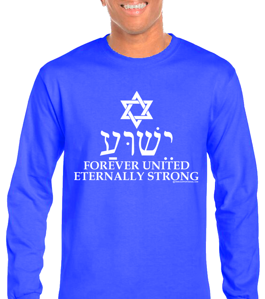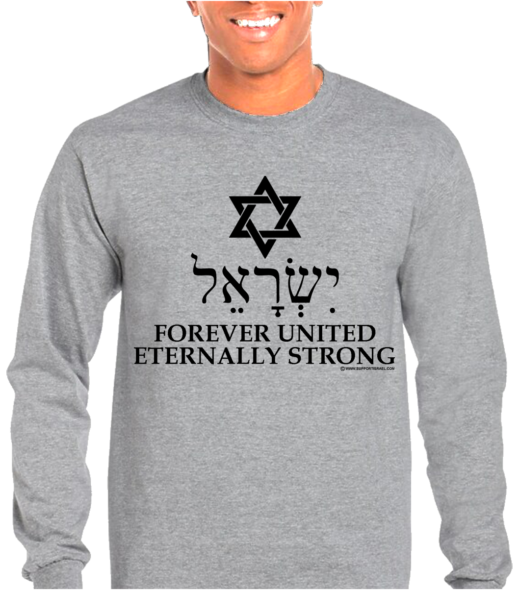 Forever United, Eternally Strong with Star of David and Israel in Hebrew Long Sleeve T-Shirt.