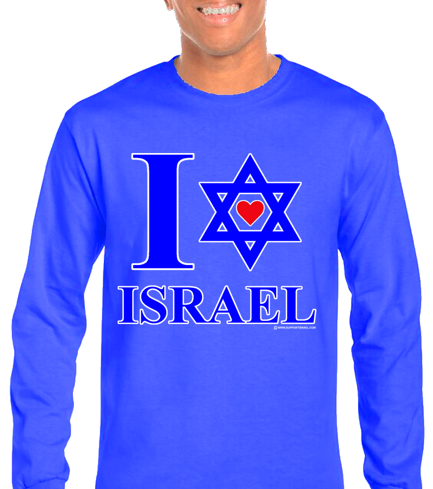 I Love Heart Israel Long Sleeve T-Shirt. Show your love for Israel with this creative take on this traditional design. It’s a design you surely will be proud to wear. It also makes a great conversation starter.